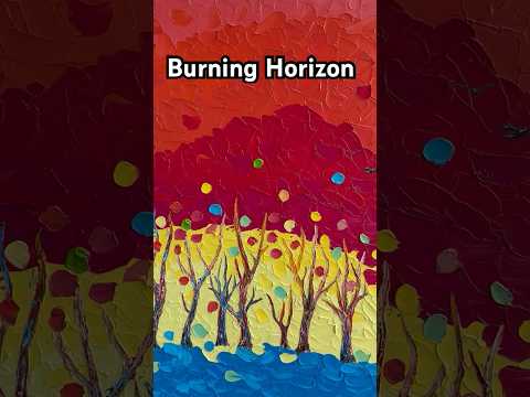 This painting is from the series "Colorful Landscapes" and captures the moment when day melts into a fiery sky. Shades of red and rose fill the space with warmth, as if the horizon itself is burning with memories. Leaves seem to float in the air—colorful like drops of light. And the trees, like figures in a dance, stand still, waiting for the breath of night. It’s a story about how nature speaks through color.