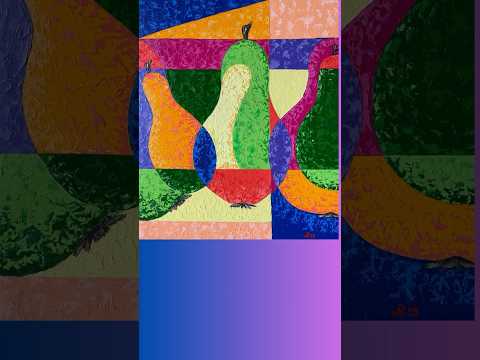 Pears attracted me with their elegant shape and the possibility to transform them into abstract figures. The subject is quite light but full of harmony, and the bright colours and dynamic lines create space for a visual journey, as if through a labyrinth, where the eye finds new and new facets of the painting.