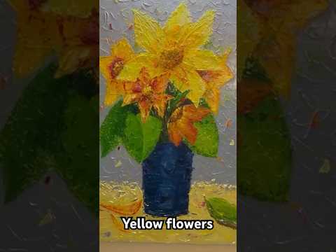 A composition of yellow flowers on a blue background creates a feeling of freshness and brightness. Pasty strokes create texture and volume, adding expressiveness. Impressionist style makes floral motifs dynamic and alive. This work reflects the beauty of still life through the simplicity and richness of the color scheme.